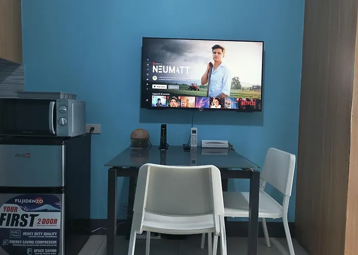A kitchen is featured with a microwave, a fridge, and kitchenware, as well as coffee and tea makers, ensuring a better dining experience. The nearest airport is Ninoy Aquino International, 10 km from this apartment, and Shell Residences bus station is about a 10-minute walk away. For those seeking extra relaxation, the apartment includes access to a wellness centre.